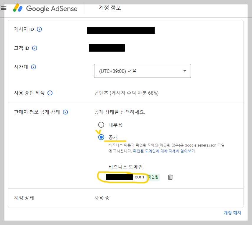 3. 판매자 정보 공개 상태에서 -> 내부용으로 되어 있는 것을 -> 공개로 바꿔 주시면 됩니다.