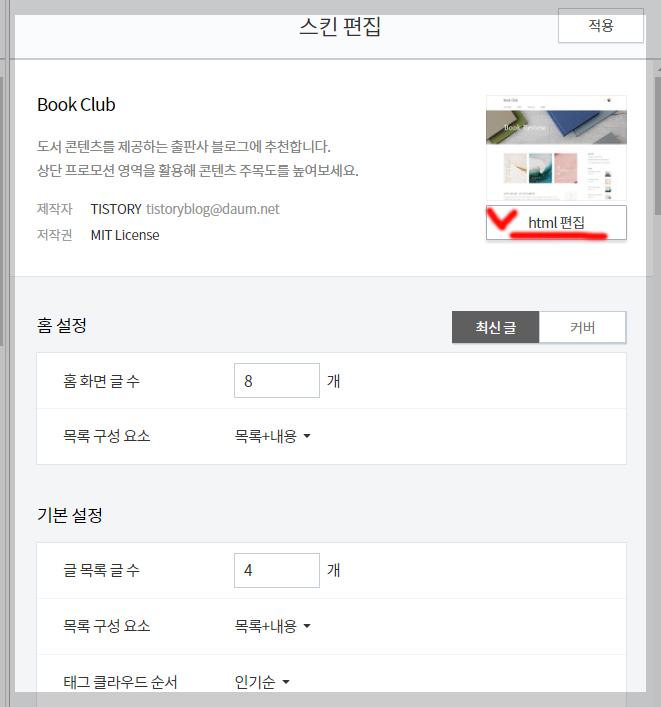 6. 오른쪽에 <HTML편집> 클릭합니다.