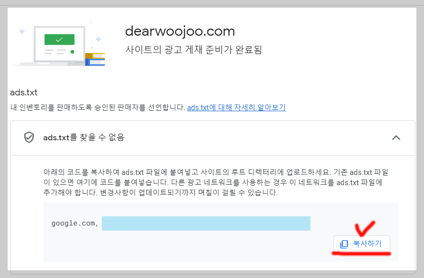 만약 Ads.txt 파일이 올바르게 설정되지 않았다면, 광고주들은 광고 게재를 거부할 수 있고, 이는 블로그의 광고 수익에 직접적인 영향을 미칠 수 있으니 즉 본인 확인 하라는 거예요.