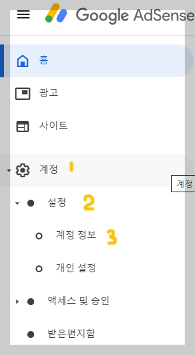 2. 왼쪽에 바에 보시면 계정클릭 -> 설정 클릭-> 계정 정보클릭