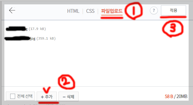 7. 상단에 <파일업로드>를 클릭하고 밑에 <추가>를 누른 뒤 아까 메모장에 저장한 <ads.txt 파일>을 불러와서 추가 후 <적용>을 클릭합니다. 끝.