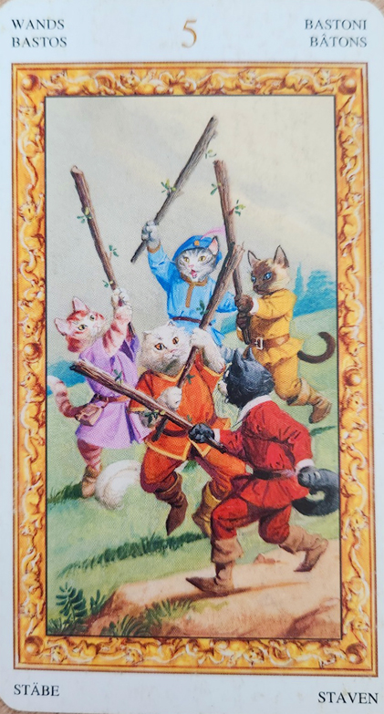 완즈5 카드의 부정적인 해석은 주로 충돌, 혼란, 경쟁으로 인한 어려움에 집중됩니다.